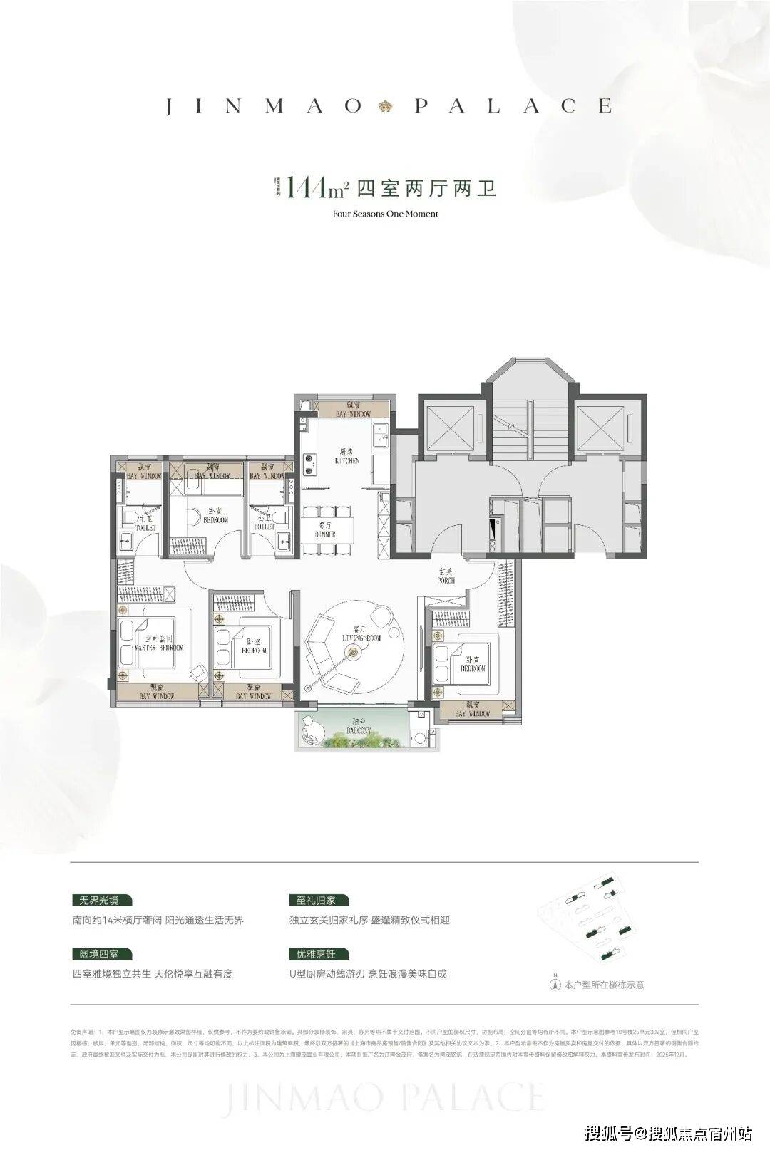 ● 建面约190㎡4房:楼王位置的顶奢大平层,同价位段在杨浦只能买到约120㎡3房!
